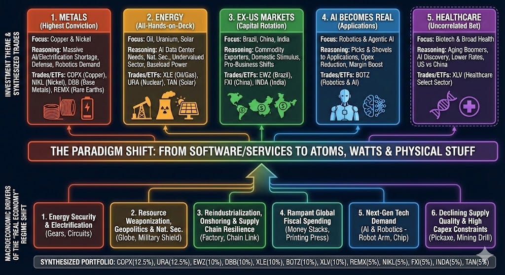 Instead, to no one’s surprise if you’ve read my earlier pieces, I think the real economy — referring to physical stuff like commodities, energy, industrial output — is set to outperform the broader market, which has been dominated by tech over the past 15 years.