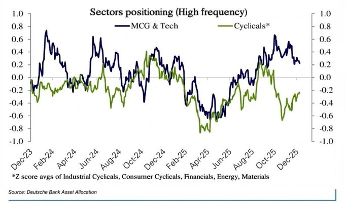 Investor positioning data shows the same. People are not invested to benefit of these themes yet. In the many conversations I’ve had with people from different parts of the world over the past few months, none mentioned commodities or cyclicals as part of their portfolio. Everyone is either looking to get into the AI trade or waiting for the bubble to burst.