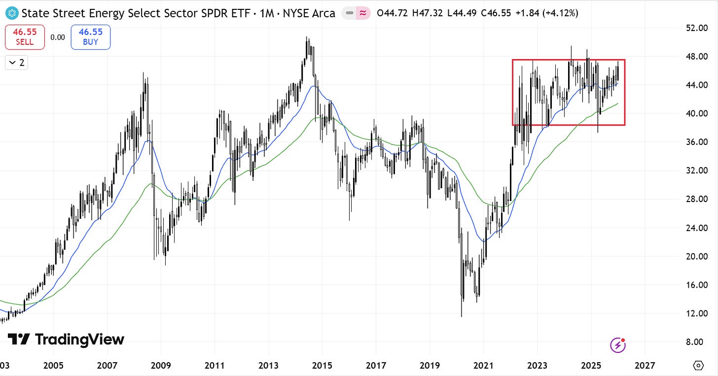 You can see that in the price chart, where the sector has been consolidating for 4 years while the rest of the market has gone higher. There’s a lot of pent-up energy to fuel this trade once it gets going – but it could take a while.